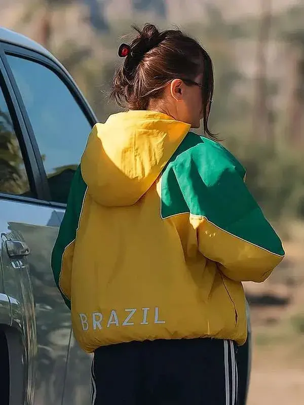The design reflects the signature streetwear aesthetic often seen in Hailey Bieber’s outfits. With a modern silhouette, clean finish, and hooded design, this jacket balances minimalism with bold presence. The relaxed fit gives it a laid-back vibe while still flattering the body, making it easy to style with jeans, leggings, cargos, or oversized hoodies. Whether you’re aiming for a casual coffee-run look or a styled streetwear outfit, this jacket fits right in.