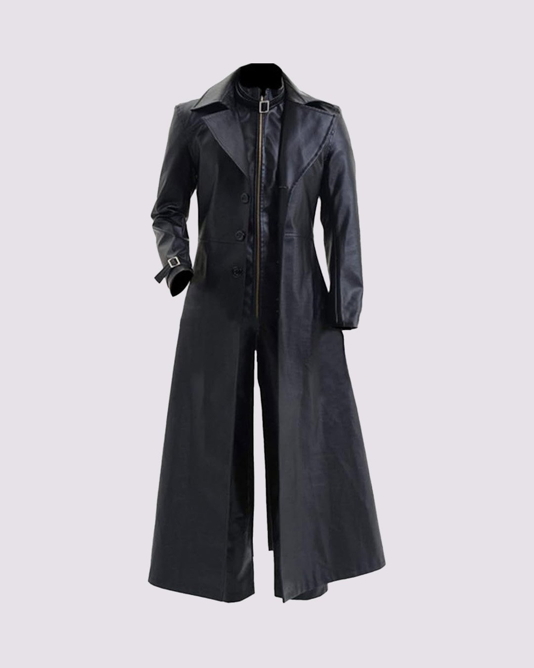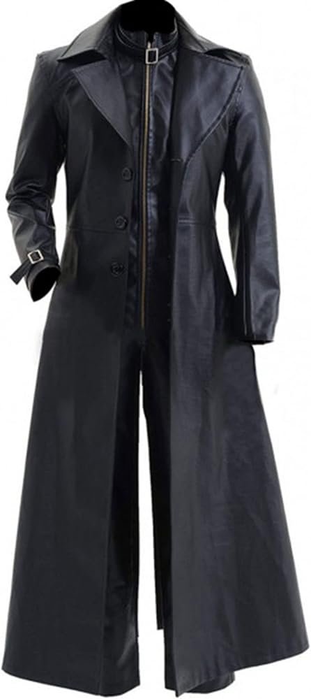 Crafted from genuine black leather, the trench coat features a smooth, structured finish that adds instant impact. The full-length design enhances its dramatic appeal, creating a sleek silhouette that reflects Wesker’s signature look. The leather feels durable yet comfortable, making it suitable for extended wear without sacrificing movement or comfort.