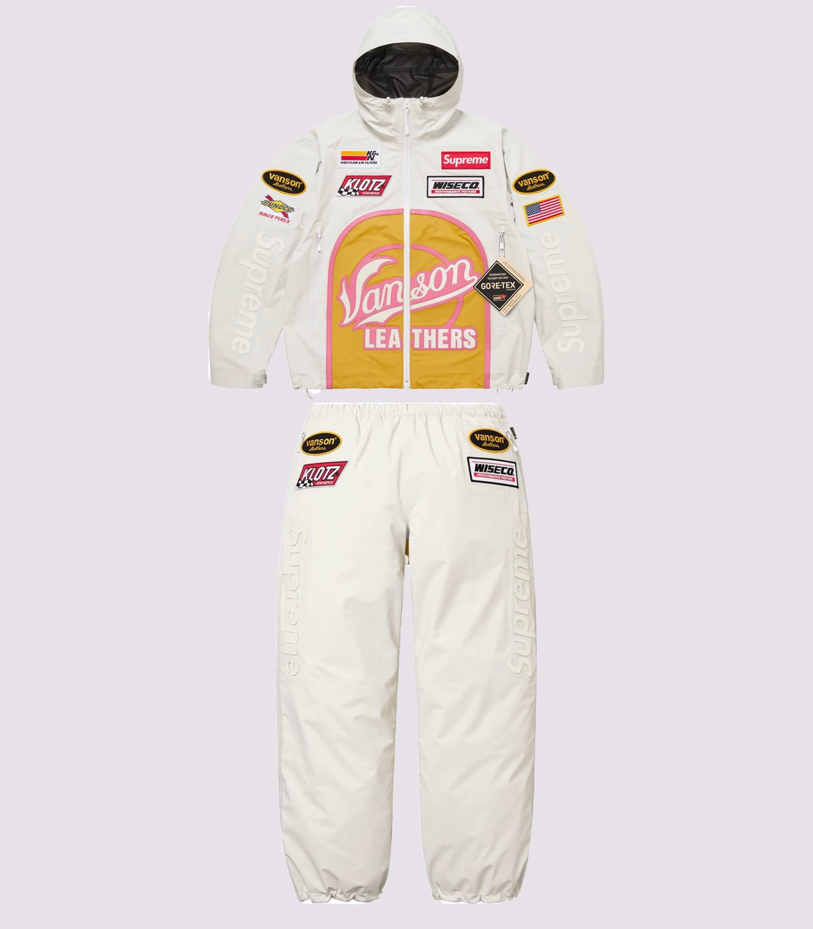Supreme Vanson GORE TEX Shell Jacket and Pant Pair White